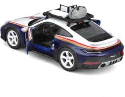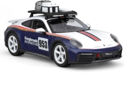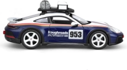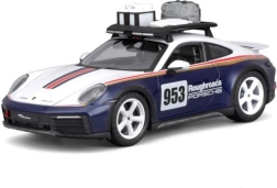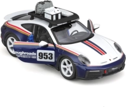Verras jezelf of kinderen met het realistische model van de Porsche 911 Dakar in schaal 1:24. Dit die-cast model in de kleurencombinatie blauw, wit en rode strepen valt op door de precieze proporties, Roughroads-emblemen en het iconische nummer 953. De metalen constructie in combinatie met kunststof details zorgt voor zowel duurzaamheid als trouw aan het echte voorbeeld.
