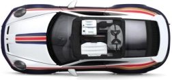 Sportieve lak, racestrepen en het nummer 953 maken van dit model een direct herkenbaar stuk voor in de vitrine én om mee te spelen.
