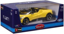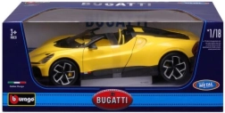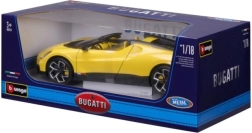 Het BBURAGO 1:18-model reproduceert trouw de elegante lijnen en aerodynamische vormen van de BUGATTI Mistral-roadster. Het interieur valt op door realistische stoelen, dashboard en stuur, terwijl het exterieur wordt gekenmerkt door de opvallende grille, sportieve velgen en nauwkeurig gevormde koplampen. Te openen onderdelen en draaibare wielen versterken de authentieke verzamelbeleving.