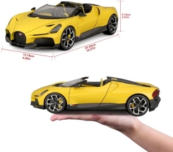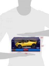 Dankzij de robuuste metalen constructie is het model geschikt voor langdurige presentatie op een plank of in een vitrine. De geel‑zwarte kleurstelling benadrukt de dynamiek en exclusiviteit van dit legendarische merk. Past perfect in de collectie van liefhebbers van supercars, maar ook als representatieve decoratie of origineel cadeau.