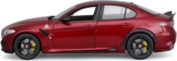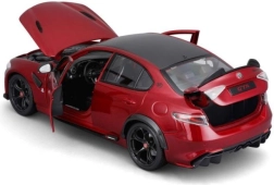 Dankzij de openende elementen kun je in de cabine en de motorruimte kijken; rubberen banden met opvallende remklauwen onderstrepen het sportieve karakter. Het Quadrifoglio-embleem – de groene klavervier – verwijst naar de racehistorie en topprestaties.