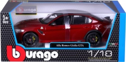 Ontdek het hoogwaardige metalen model ALFA ROMEO GIULIA GTA in aantrekkelijk rood metallic. De BBURAGO 1:18 Plus-serie biedt realistische proporties, scherpe carrosseriedetails en de sportieve sfeer van een auto die bekendstaat om zijn lichtgewicht, prestaties en precies stuurgedrag. Het model valt op door aerodynamische lijnen, gele remklauwen en een prominente achterspoiler.