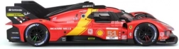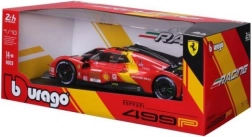 Het iconische prototype FERRARI 499P in een hoogwaardige uitvoering van BBurago biedt een realistische afwerking die de race-DNA van de auto benadrukt: expressieve lijnen, achtervleugel, luchtinlaten en nauwkeurige replica’s van sponsorlogo’s. Metalen delen worden aangevuld met kunststofdetails voor maximale trouw aan het origineel.
