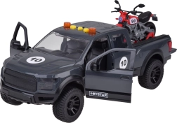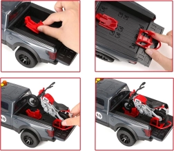 Het achtergedeelte van de pickup is uitgerust met een afneembare motorfiets, wat nog meer interactieve speelmogelijkheden biedt.