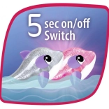 Deze dolfijn is populair vanwege zijn paarse lichaam bedekt met een zilveren glanzende laag. Een sensor onder de staartvin laat de dolfijn oplichten in regenboogkleuren bij elke aanraking. De glanzende dolfijn is niet alleen geweldig om mee te spelen, maar ook als badspeelgoed omdat hij kan drijven op water en onder water kan oplichten.