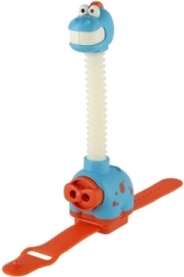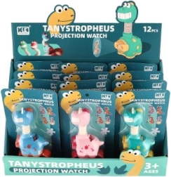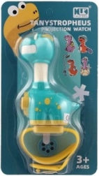 Leuke polsprojector met dinosaurusthema en uitschuifbare kop die beelden projecteert met 2 projectieschijven. Batterijen 3× AG13 inbegrepen, dus direct klaar voor gebruik. Verkrijgbaar in 3 kleuren, geschikt vanaf 3 jaar.
