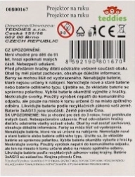 De projector wordt geleverd met 3× AG13-batterijen en 2 projectieschijven, zodat je direct na het uitpakken kunt spelen. Kies uit drie kleurvarianten (blauw, roze, turquoise). De kaartverpakking is perfect als klein cadeautje.