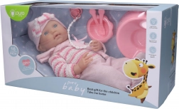 Een schattige babypop in een zachte roze onesie zal elke kleine mama blij maken. De pop van 40 cm is ideaal om mee te spelen en te verzorgen en wordt geleverd met praktische accessoires: een potje, kom, bestek en fopspeen voor nog realistischer speelmomenten.