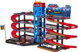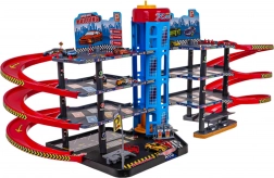 Meerdere niveaus met rode spiraalrampen en parkeerplaatsen ondersteunen dynamisch spel, racen en nauwkeurig parkeren.