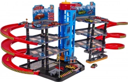 De grote, meerlaagse parkeerplaats brengt kinderen een realistische wereld van races en stadsverkeer. Autootjes rijden tussen de verdiepingen via rode ramps of gebruiken de centrale lift met handslinger. Dankzij de levendige kleuren, stabiele kunststofconstructie en rijke uitrusting is spelen boeiend en veilig.