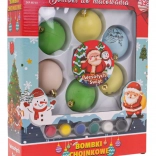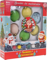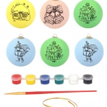 Deze set bevat 6 ornamenten om te verven, geschikt voor kinderen vanaf 3 jaar. Elk ornament is voorzien van een laag met een kerstmotief dat je naar eigen fantasie kunt inkleuren. De set bevat ook verf met een penseel en extra koordjes om op te hangen.
