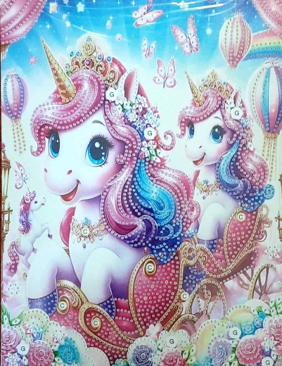 Het motief van eenhoorns in een koets zal liefhebbers van sprookjesmotieven bekoren en is een prachtige decoratie voor de kinderkamer of creatieve hoek. De set is ook een uitstekend cadeau voor elke gelegenheid – ze brengt plezier in samen creatief bezig zijn met familie en vrienden.