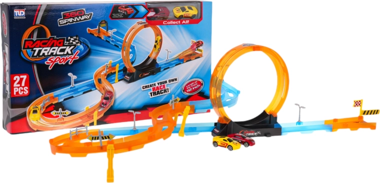 Deze baan is het ideale cadeau voor kleine racers. Het biedt plaatsen voor rechte ritten en scherpe bochten met beschermingsbarrières die zorgen voor een veilige rit. Looping van 360 graden biedt maximaal plezier tijdens het racen. Twee niveaus van de baan bieden ruimte voor creatief spelen.