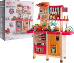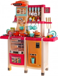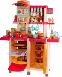 Deze kwalitatief afgewerkte keuken in levendige kleuren stimuleert fantasie en rollenspel. Het interactieve kookblad start bij het draaien aan de knoppen kook- en bakgeluiden met oplichtende kookpitten. Uit de kraan stroomt echt water, zodat kinderen de afwas kunnen “doen” zoals in een echte keuken.