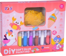 De zachte kleuren worden rechtstreeks in de verdiept gelijnde vormen aangebracht, zodat ze niet over de randen vloeien. Kinderen genieten van eenvoudig, leuk en netjes kleuren.