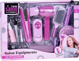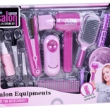 De kinderföhn en -stijltang bootsen echte tools na en stimuleren rollenspel. Licht- en geluidseffecten versterken de authentieke salonsfeer.