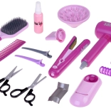 Föhn, stijltang, borstels, kammen, klemmen, rollers en ook een schaar – alles wat een kleine kapper nodig heeft om kapsels te maken, thuis en onderweg.