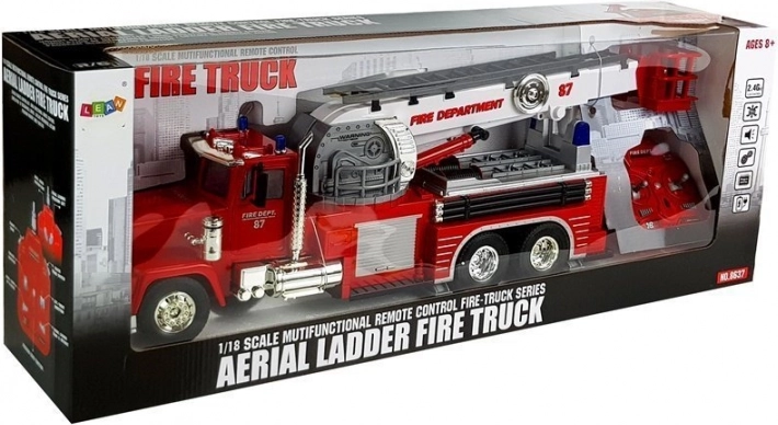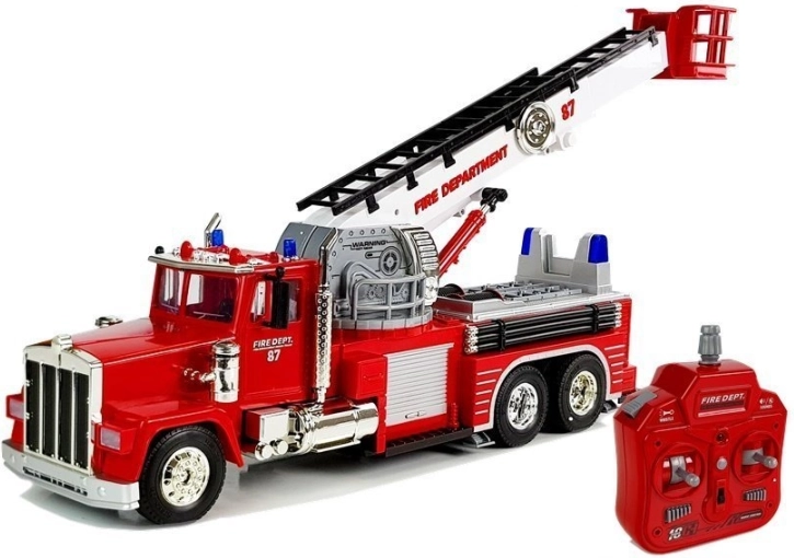 Brandweerauto 60 cm met uitschuifbare, draaibare ladder R/C sirene en lichten