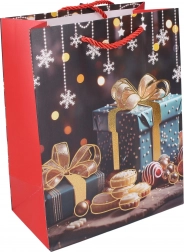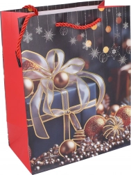Stijlvolle cadeautas in maat S, ideaal voor het verpakken van kleinere cadeaus. Afmetingen 23 × 18 × 10 cm, kerstmotieven en comfortabel dragen. Verkrijgbaar in 4 varianten, met stevige handgrepen en hoogwaardig papier voor een veilige en elegante cadeau-overdracht.