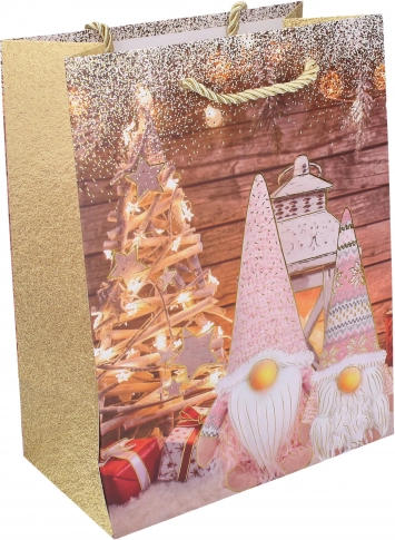 Stijlvolle kerstcadeautas in maat S (23 × 18 × 10 cm) voor elegant inpakken zonder knippen of inpakpapier. Ideaal voor kleinere verrassingen, beschikbaar in 4 varianten en met stevige hengsels voor comfortabel dragen.