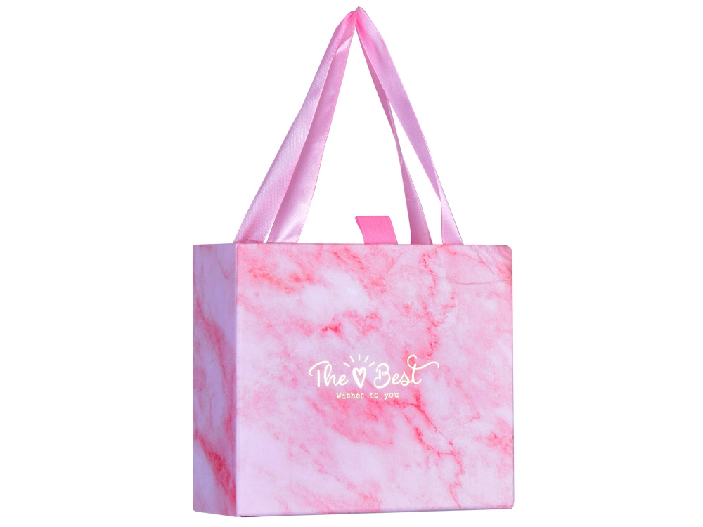 De elegante roze tas van stevig papier is ideaal voor het opbergen van onderdelen en klaar gemaakte armbanden. Perfect als je de set cadeau wilt doen.