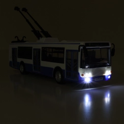 Ontdek het plezier van stadsvervoer met de blauwe trolleybus die Tsjechisch spreekt en bij het openen van de deuren halteomroep afspeelt. Realistische details in schaal 1:43 en een lengte van 28 cm maken het een fraai model en een stevige speelgoedauto voor dagelijks speelplezier.