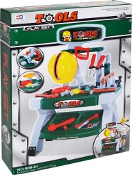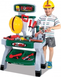 Kinderwerkbank met een uitgebreide set gereedschap voor kleine doe-het-zelvers, biedt alles wat nodig is voor creatief spel en ontwikkeling van de motoriek. Bevat een helm, schroeven, moeren, tandwielen, tang, hamer, sleutels, zaag, combinatietang, schroevendraaiers en een bankschroef. De compacte afmetingen van 44 × 28 × 71 cm zorgen voor eenvoudige plaatsing in de kinderkamer.