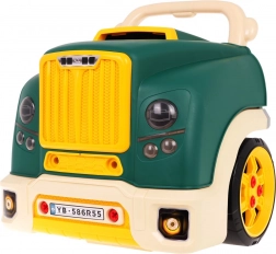 Interactieve set voor kleine monteurs in de vorm van de voorkant van een vrachtwagen, met realistische speelervaring dankzij lampen, geluiden en een demonteerbare motor. Kinderen oefenen hun fijne motoriek, oog-handcoördinatie en leren de basis van “reparaties” met schroeven, gereedschap en een functioneel dashboard met claxon en motorstart.