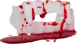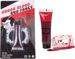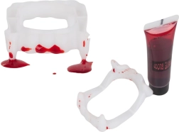 Verander jezelf in enkele seconden in een echte vampier. Witte kunststof hoektanden met rode accenten imiteren vers bloed en creëren samen met de tube nepbloed een authentiek horroreffect voor make-up en kostuums. Geschikt voor Halloween, gemaskerde bals, themafeesten en film- of fotoprojecten.