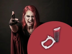 De handige tube met nepbloed laat je druppels en vegen aanbrengen voor een nog authentiekere vampiermake-up.