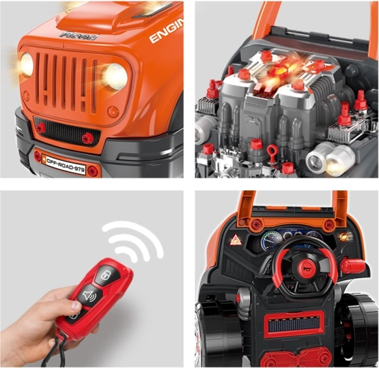 Verander de kamer in een mini-autogarage! Deze interactieve mechanische set biedt licht- en geluidseffecten, een openende motorkap, een uitneembare motor en afneembare wielen met gereedschap. Kinderen proberen realistische servicehandelingen uit – de motor starten, wielen wisselen, olie meten en de auto “opkrikken” – en ontwikkelen daarbij fijne motoriek, logisch denken en creatief rollenspel.