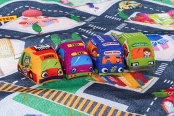 Ontdek de speelse viltmat met stadsprint en 4 zachte autootjes voor de allerkleinsten vanaf 6 maanden. De mat heeft een kleurrijke print van straten en gebouwen, stimuleert de verbeelding en veilig spelen. Eenvoudig te onderhouden, met levendige kleuren en ideaal voor de eerste motorische vaardigheden.