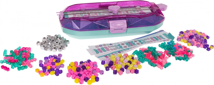 Deze rijk uitgeruste set is ideaal voor kleine makers die hun eigen originele armbanden willen ontwerpen en maken. Dankzij de machine met opbergruimte blijft het werken met kralen overzichtelijk en comfortabel – rijg gewoon de vislijn in, plaats de kralen en trek het voltooide patroon aan. Kinderen kunnen werken volgens de meegeleverde 15 voorbeeldsjablonen of hun fantasie de vrije loop laten.
