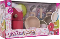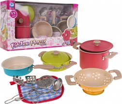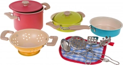 Deze kleurrijke kinderset met kookgerei brengt een authentieke kookervaring in elke kinderkitchen. Twee potten met deksels, een pan, een vergiet en vier praktische keukenhulpen bieden alles wat kinderen nodig hebben om echt koken na te bootsen. Dankzij de metalen materialen is de set stevig, duurzaam en klaar voor dagelijks spel.