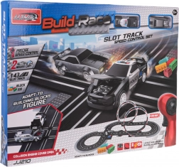 | Bekijk hoe het werkt. | Met de afzonderlijke bouwblokken bouw je een baan met scherpe bochten, spiralen en rechte stukken, allemaal voor maximaal speelplezier en extra spanning tijdens het spel. De set bevat twee voertuigen, waaronder één politieauto. De auto’s hebben te openen motorkappen. De set is ideaal voor kinderen vanaf 6 jaar. Het speelgoed werkt op 6 x AA 1,5V batterijen (batterijen niet inbegrepen). Functies van de set - geschikt voor kinderen vanaf 6 jaar, - gemaakt van lichte, hoogwaardige materialen, - de baan bevat rechte stukken, 360-graden loops, bochten, spiralen, - schaal 1:43, - set van 10 blokken om langs de baan te plaatsen, - voertuigen met te openen motorkappen, - baan kan op netstroom of op batterijen werken, - ronde-teller, - 2 snelheden. |