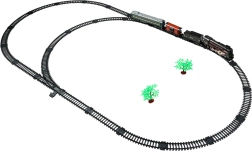 Deze gedetailleerde stoomtreinset biedt kinderen een authentieke treinervaring. Tijdens het rijden laat de locomotief fijne stoom ontsnappen uit de schoorsteen en zijopeningen (na bijvullen van water met de meegeleverde pipet), brandt het frontlicht en kun je voorwaarts, achterwaarts of stoppen kiezen. Voor rustig spelen kun je het locomotiefgeluid uitschakelen.