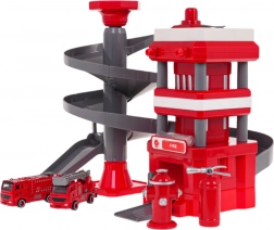 De brandweerkazerne met een meerlagige spiraalvormige helling stelt brandweerwagens in staat naar beneden te rijden en zo de motorische vaardigheden van kinderen te ontwikkelen.