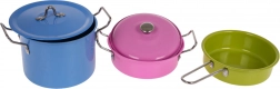 Licht het spel van uw kind op met deze prachtige set kleurrijk keukengerei. Bevat een mooie blauwe pot met oren en deksel, een roze pot met oren en deksel, een groene pan, en diverse keukengerei, wat bij elkaar de perfecte set vormt voor jonge chefs.