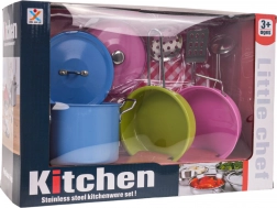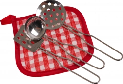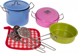 Maak koken leuk met deze kleurrijke set keukengerei! Geschikt voor kinderen vanaf 3 jaar, het metalen servies komt in aantrekkelijke kleuren voor kookschool of spelen.