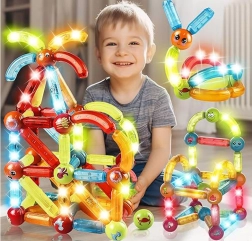 De magnetische bouwset maakt het mogelijk om diverse vlakke en driedimensionale structuren te bouwen, stimuleert creatief spel en ontwikkelt motorische en logische vaardigheden.