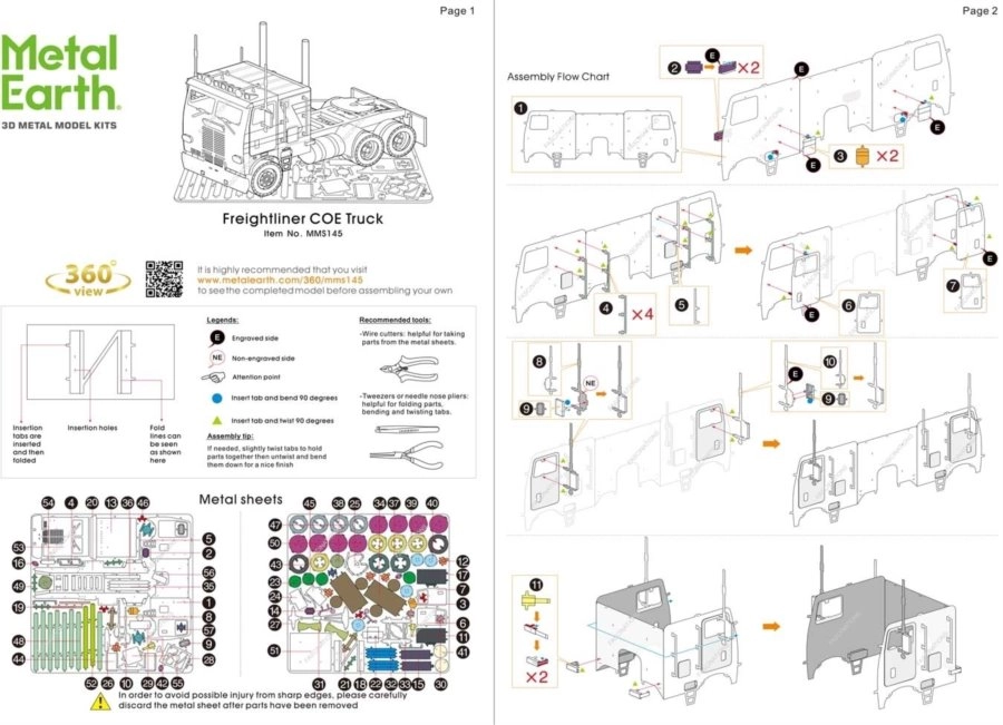Dit model uit de FREIGHTLINER-reeks toont een klassieke truck met cabine boven de motor (COE), die uitblinkt met realistische details dankzij lasergravure. Uit twee stalen plaatjes van 11 × 11 cm bouw je eenvoudig een indrukwekkende miniatuur die schittert in een vitrine of op je bureau.