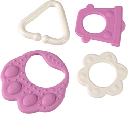 De bijtring in de vorm van een berenpoot roze is ontworpen om gemakkelijk vast te grijpen door de kleine kinderhand en tegelijk veilig zonder scherpe randen.