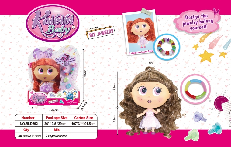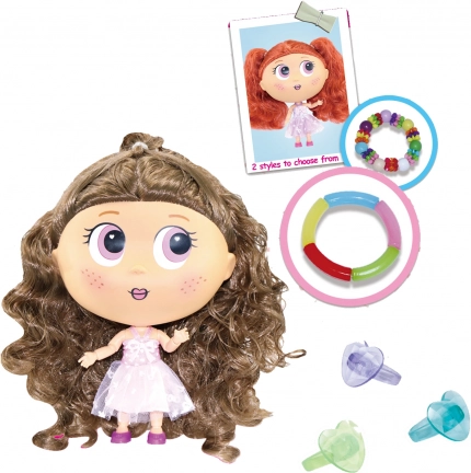 Prachtige pop met accessoires van 18 cm, geschikt voor elke kleine prinses. Bevat een stijlvolle armband en 3 ringen. Beschikbaar in twee varianten, met bruine of rode haren.