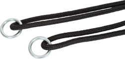 De touwen zijn in hoogte verstelbaar en metalen ringen maken snelle ophanging en verwijdering mogelijk, waardoor de schommel praktisch en eenvoudig te gebruiken is.