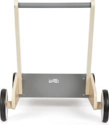 Ontdek een betrouwbare partner voor de eerste stapjes. De robuuste constructie van hoogwaardig gelamineerd hout in combinatie met leigrijze accenten biedt zekerheid, veiligheid en een moderne look. Afgeronde randen en rubberen wielen zijn vriendelijk voor kinderhandjes én vloeren, terwijl het remsysteem helpt een ontspannen tempo te behouden tijdens het leren lopen.