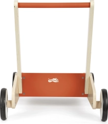 Het minimalistische ontwerp in rood en natuurlijk hout past perfect in de kinderkamer en de kinderopvang. De loopwagen stimuleert de ontwikkeling van balans, grove motoriek en zelfstandigheid. Afmetingen 62 × 40,5 × 45,5 cm zijn ideaal voor kinderen vanaf 12 maanden.