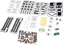 Deze veelzijdige bouwset biedt kinderen en ouders urenlang plezier en leren. Uit één set bouw je 4 verschillende modellen – een tank, houtkapmachine, heftruck en een rups constructie-graafset. Na het aansluiten van de accu en het plaatsen van batterijen in de controller komen de modellen tot leven en kun je ze gemakkelijk besturen.