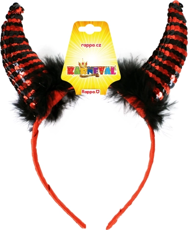 Steel de show op carnaval of bij Sinterklaas met een stijlvolle accessoire – een haarband met duivelshoorns versierd met oogverblindende pailletten en zachte veren. De lichte satijnen haarband zit comfortabel op het hoofd en geeft je kostuum een opvallend en charmant effect.