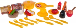 Een pan met deksel, koekenpan, borden, keukengerei en diverse speelvoedsel-items bieden talloze speelscenario’s en stimuleren creatief spel.