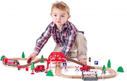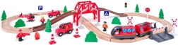Complete set met trein, rails, brug, verkeersborden, bomen en figuren, die talloze speelmogelijkheden en scenario’s uit de wereld van de brandweer biedt.